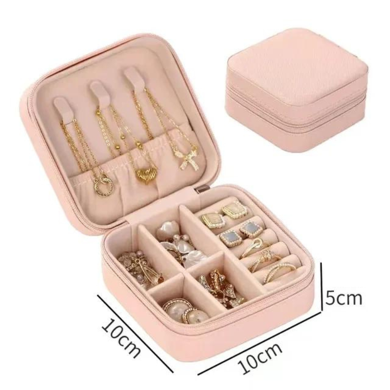 • Compacto y Chic: Con un tamaño ideal de 10x10x5,5 cm, nuestro mini joyero cabe en cualquier maleta o bolso, llevando la elegancia a donde ella vaya.